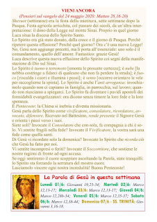 Foglio di collegamento delle parrocchie di Piano di Coreglia, Ghivizzano, Calavorno, Vitiana e Tereglio. Suggerimenti per la riflessione, la preghiera e l'attività per approfondire e vivere in famiglia la settimana che segue la Pentecoste.